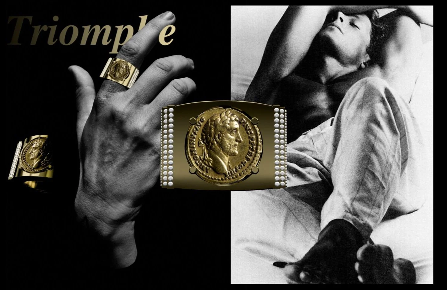So everything fell into place, to create this ring, resembling Julius Caesar, on a pedestal on which he places himself. A ring that, with its diamond steps, symbolizes the stages of his success. The steps he had to climb to achieve his triumph, to succeed in wearing this jewel and thus have the impression of rising above his own limitations by validating his social status.